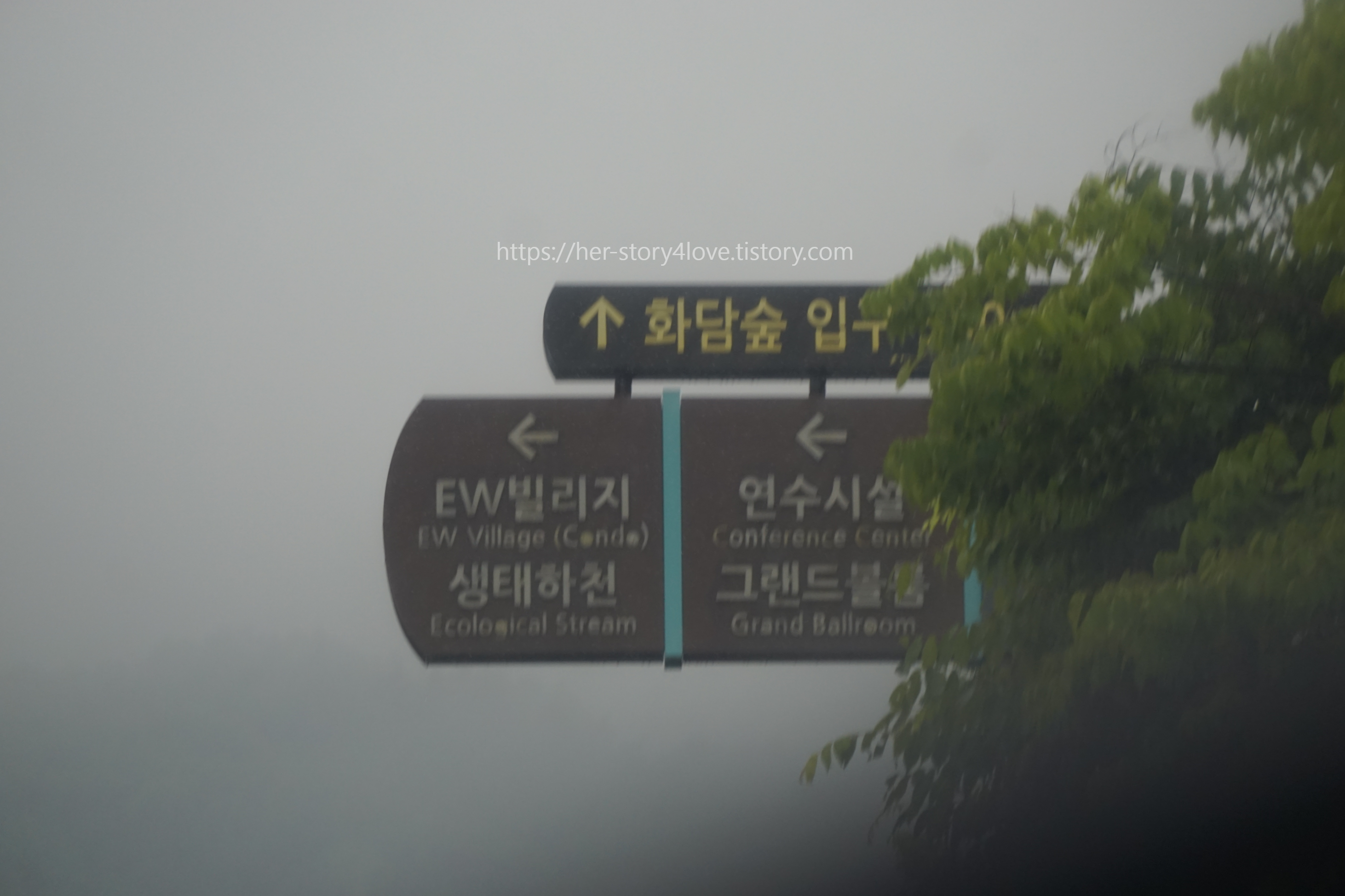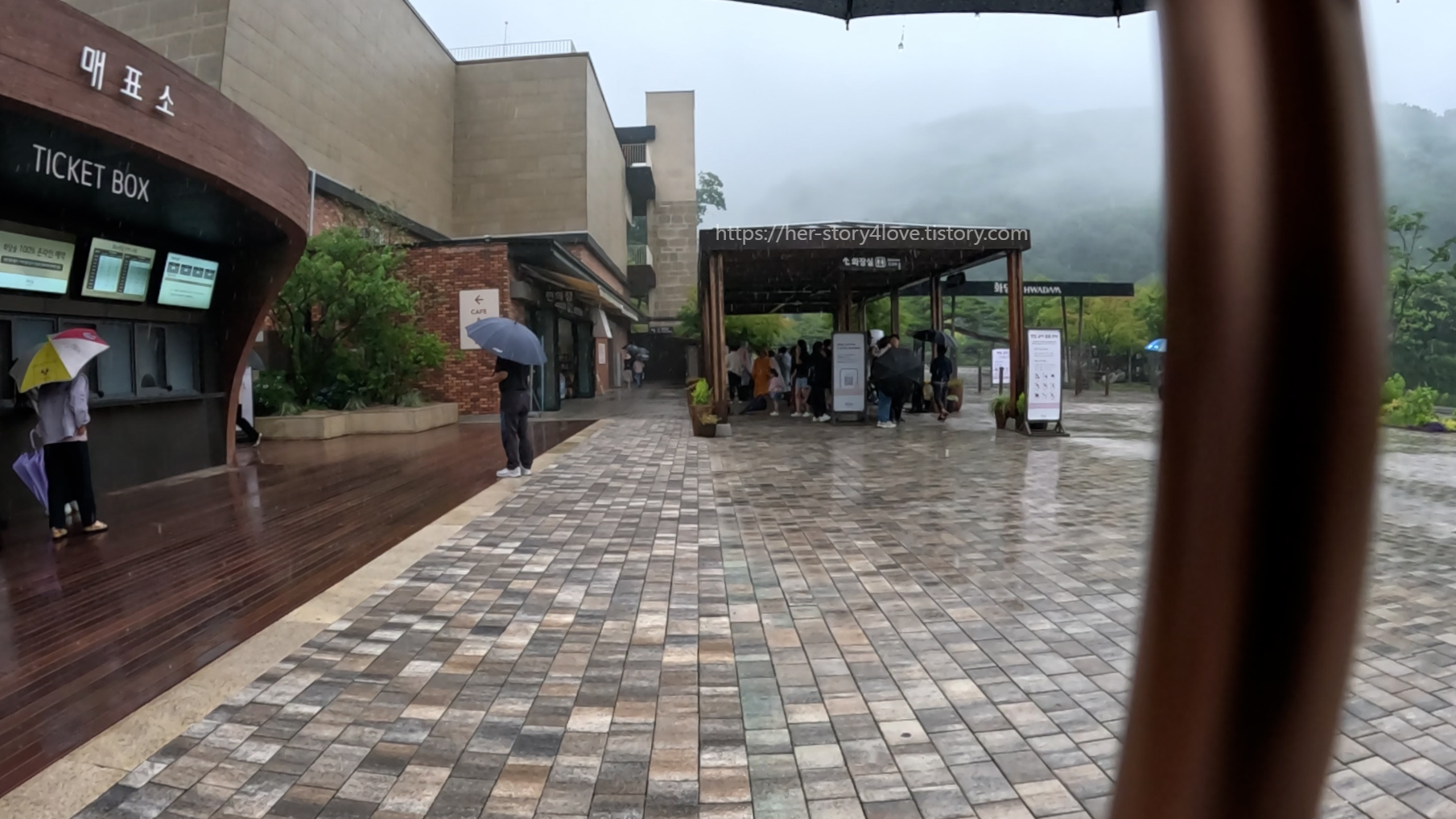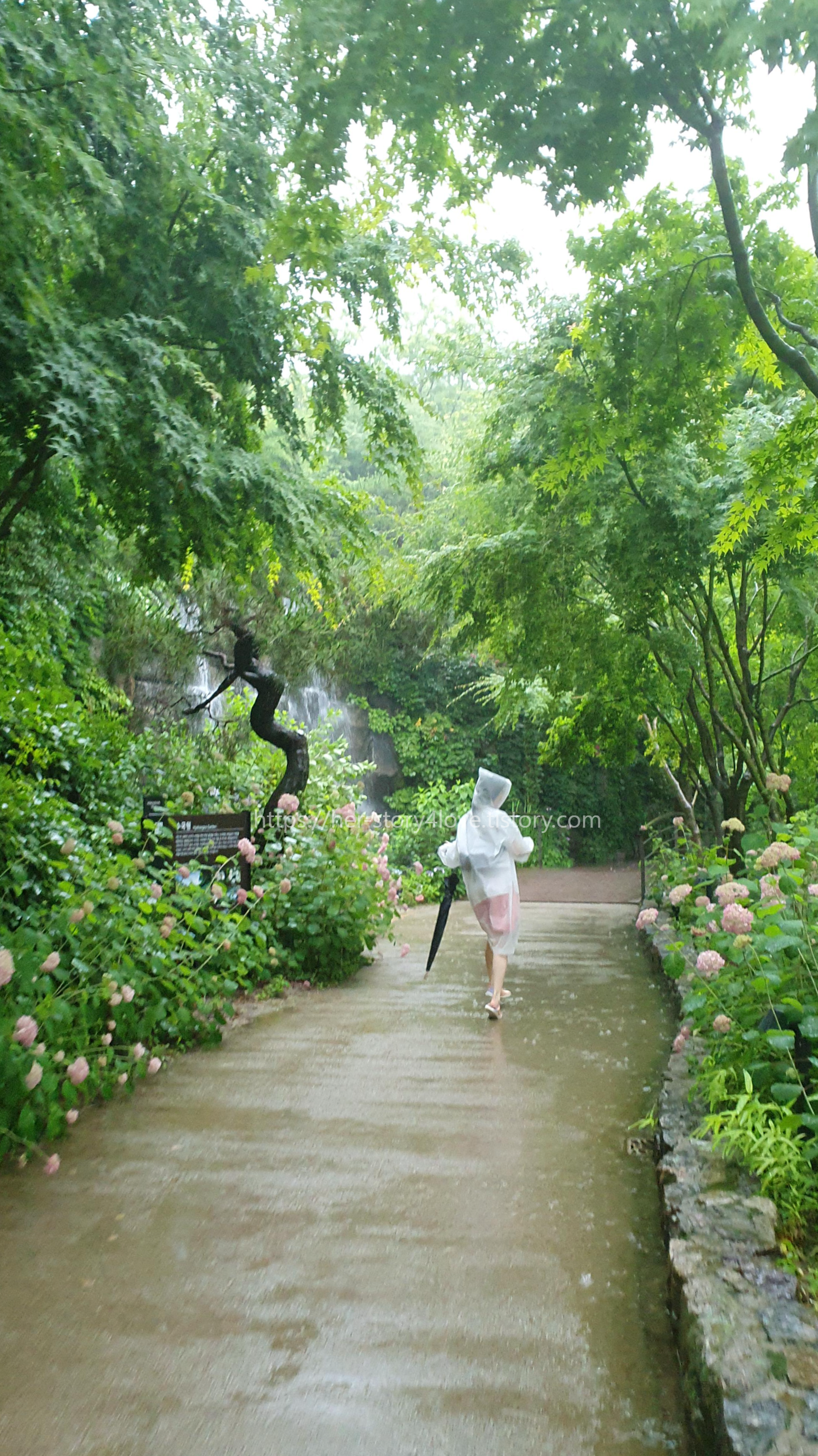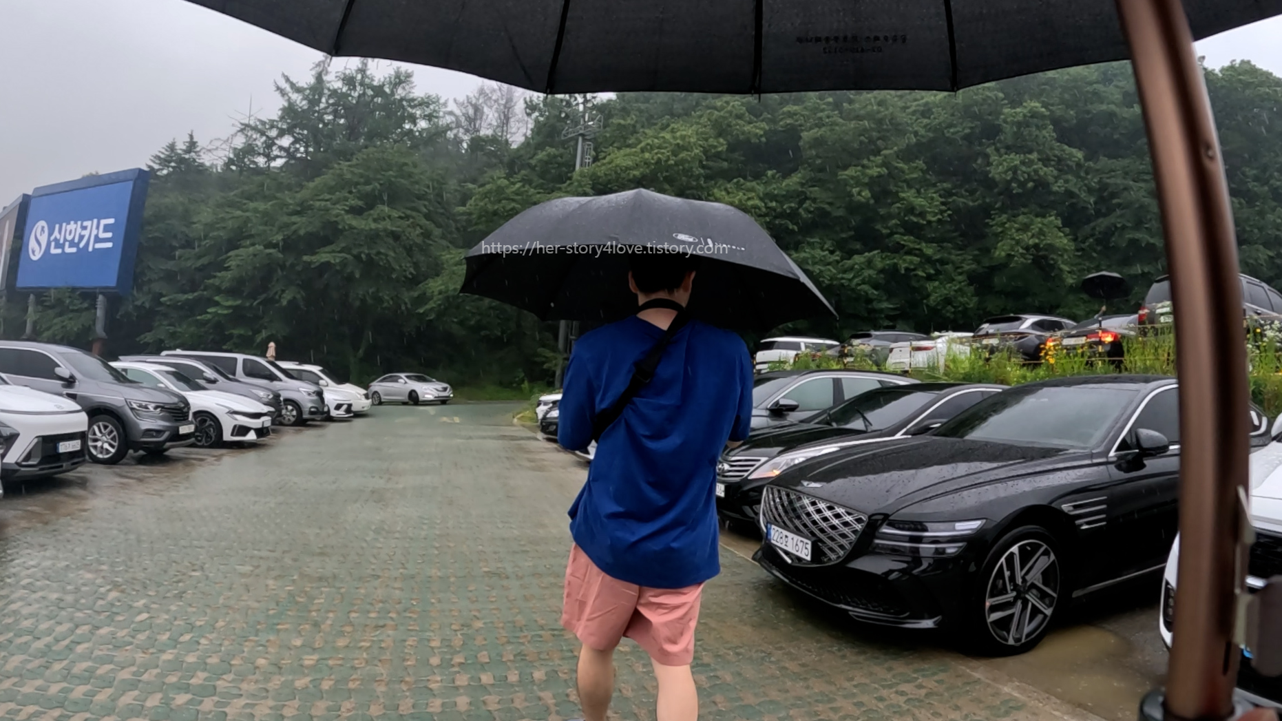 어쨌든 주차를 하고 트렁크에 넣어둔 아쿠아슈즈를 신고, 우산을 쓰고 화담숲 입구로 향했다.