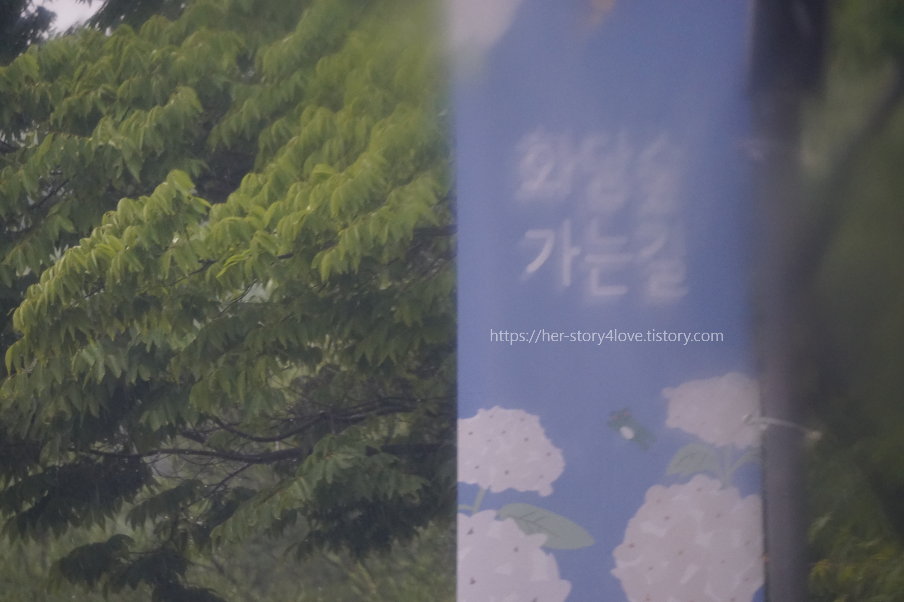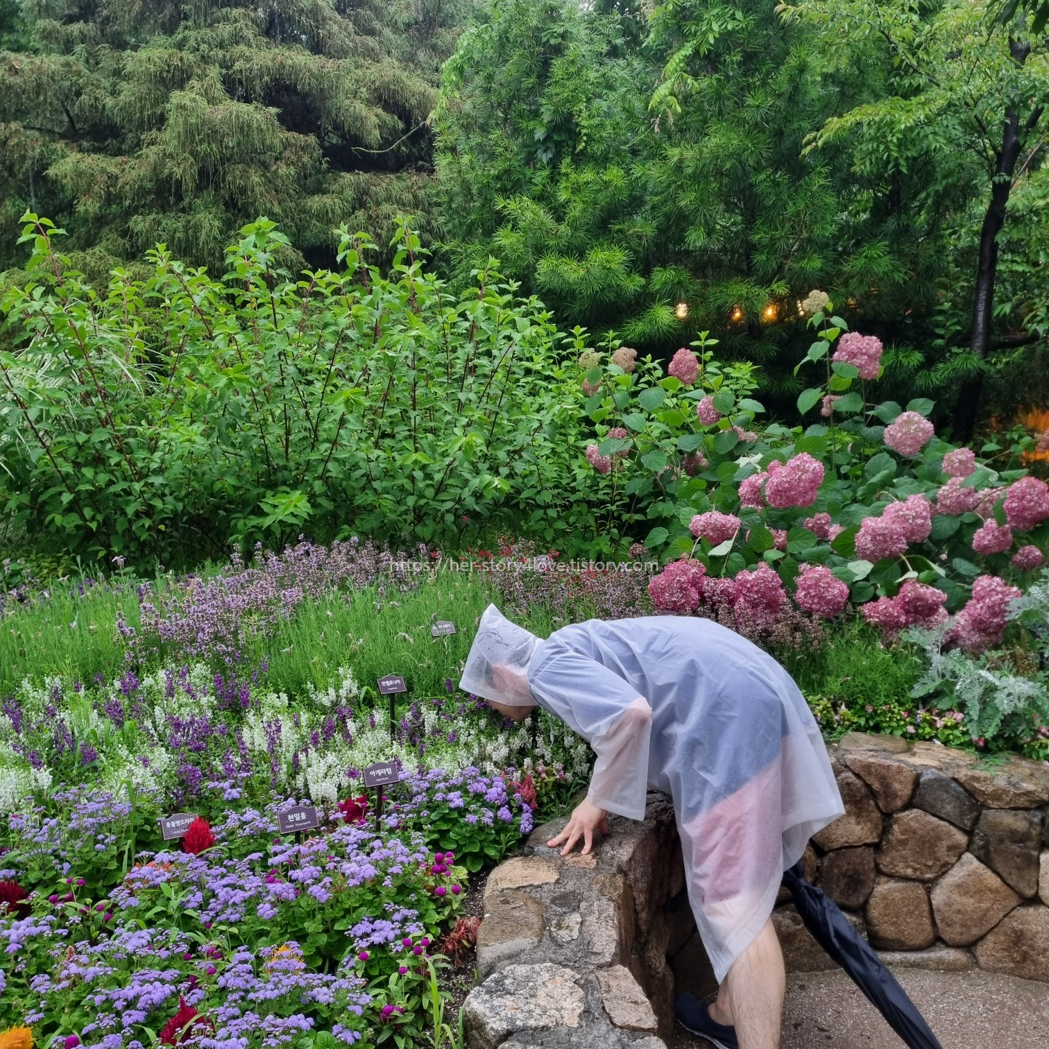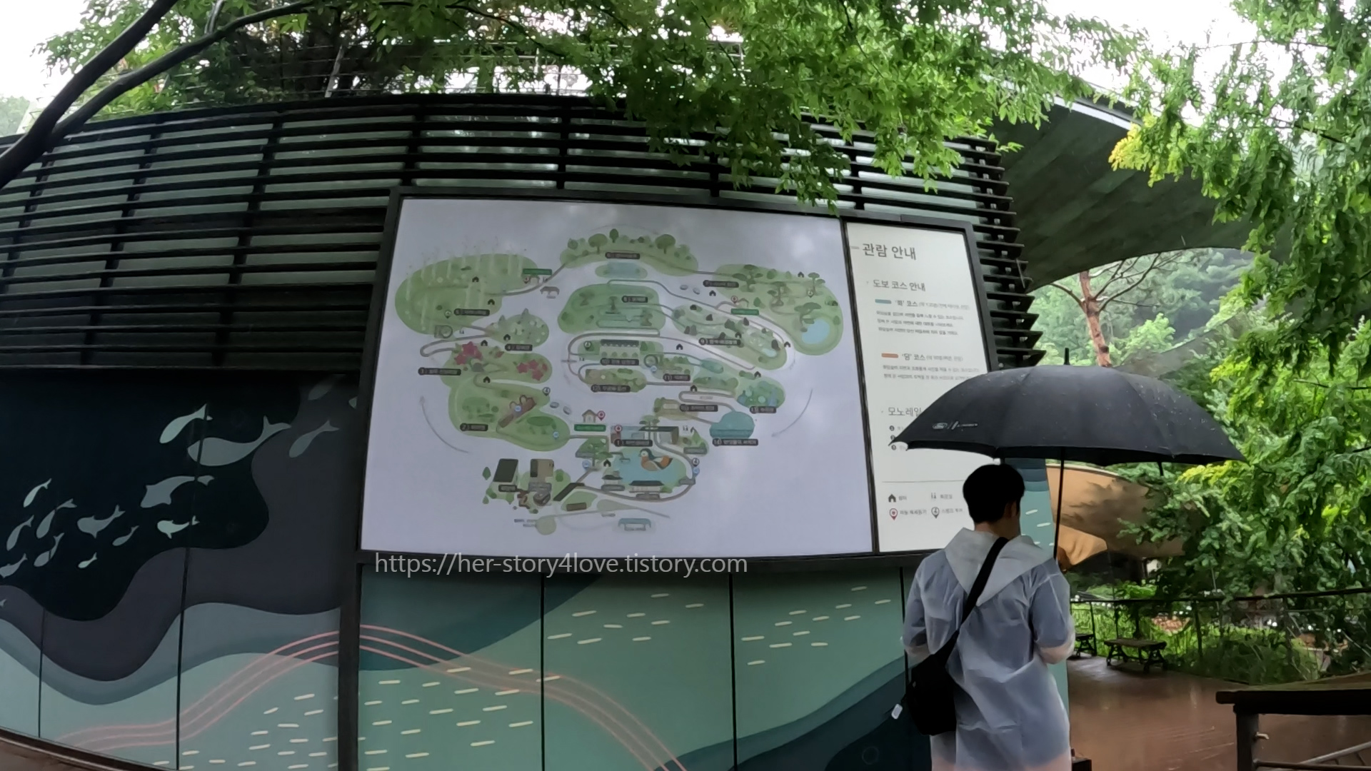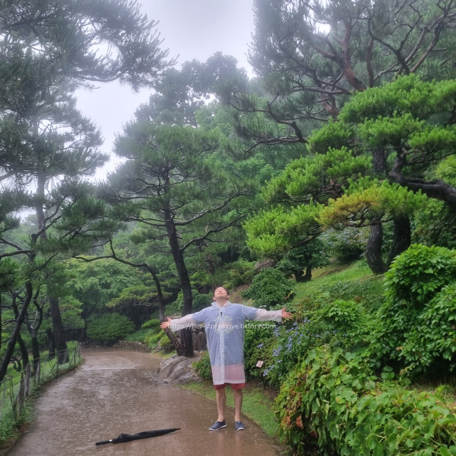 어쨌든 주차를 하고 트렁크에 넣어둔 아쿠아슈즈를 신고, 우산을 쓰고 화담숲 입구로 향했다.