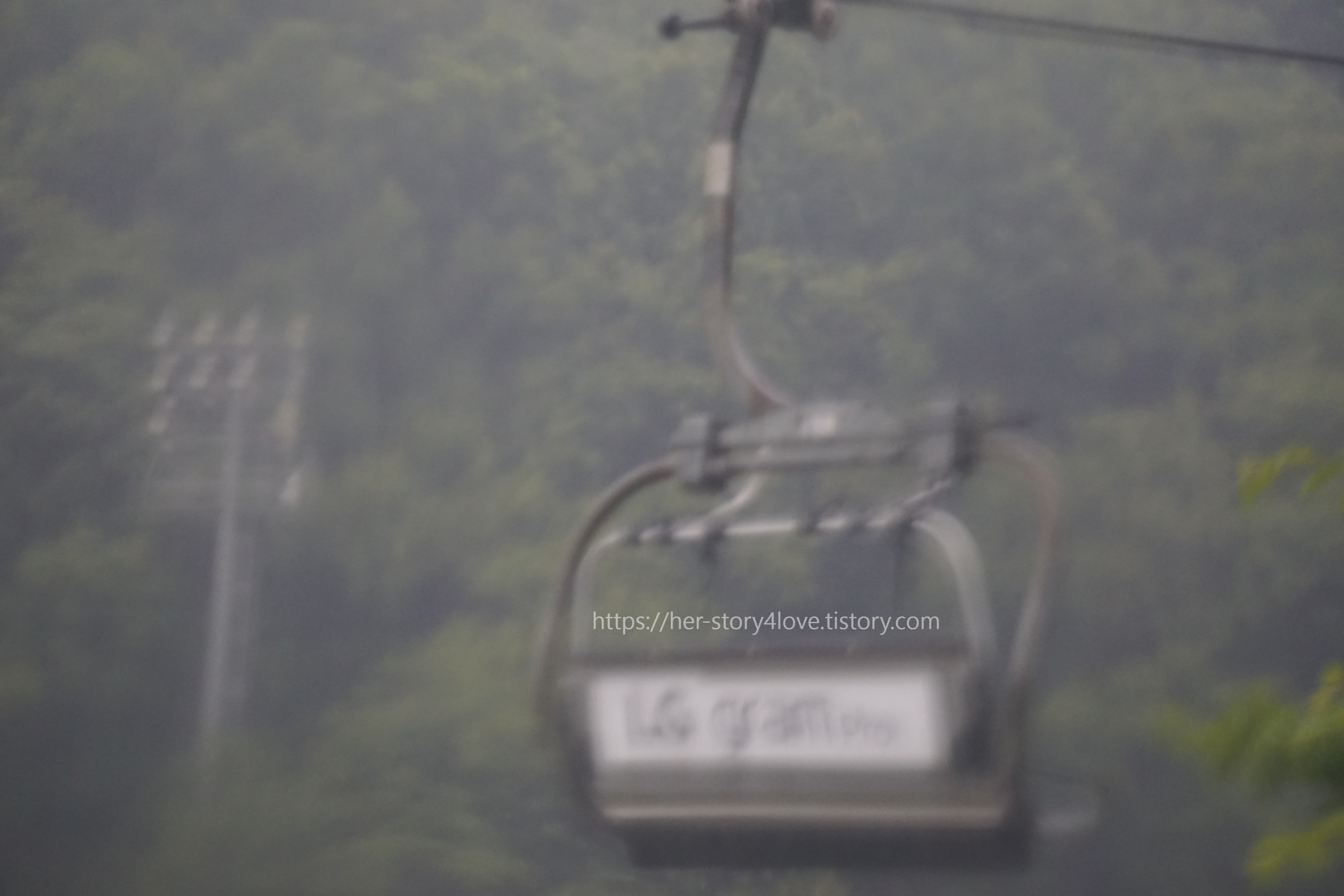 주차장 입구부터 보이는 케이블카를 보고 설마 이 우천속에 케이블카를 타자는건 아니겠지?