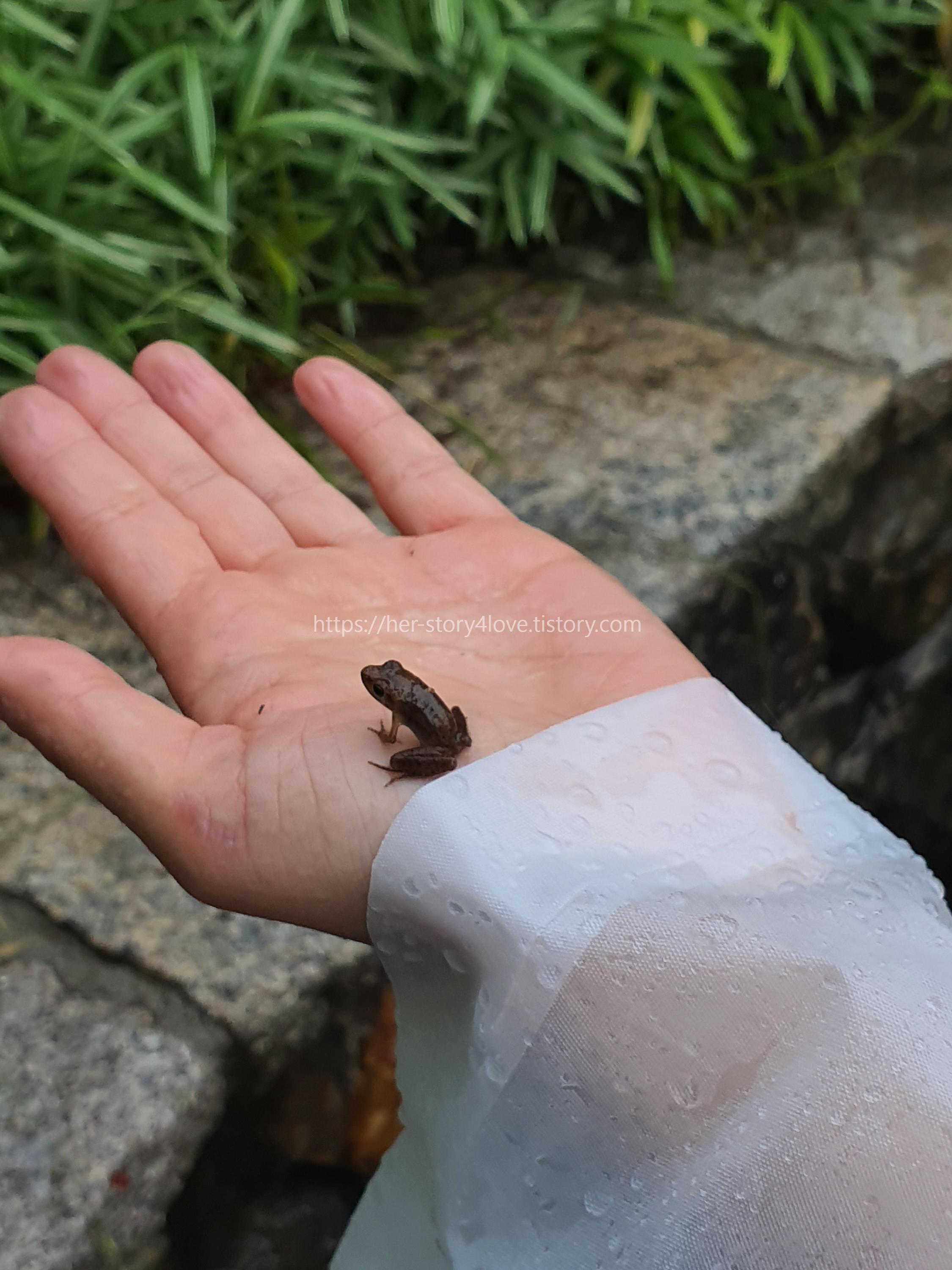 밟지 않기위해 피해서 조심조심 걸어야 할 정도로 길 위에 온통 개구리새끼들이 폴짝폴짝 뛰어다녔다.