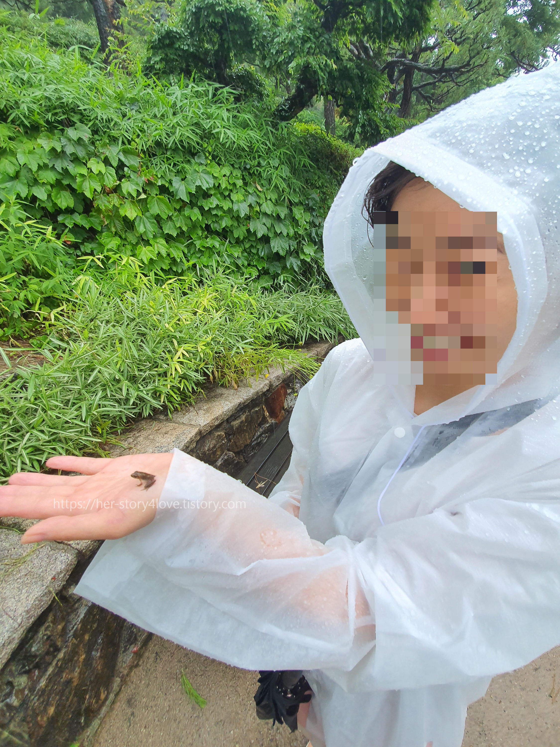 우비를 썼지만 물속을 걷는 느낌이 들 정도로 높은 습도.