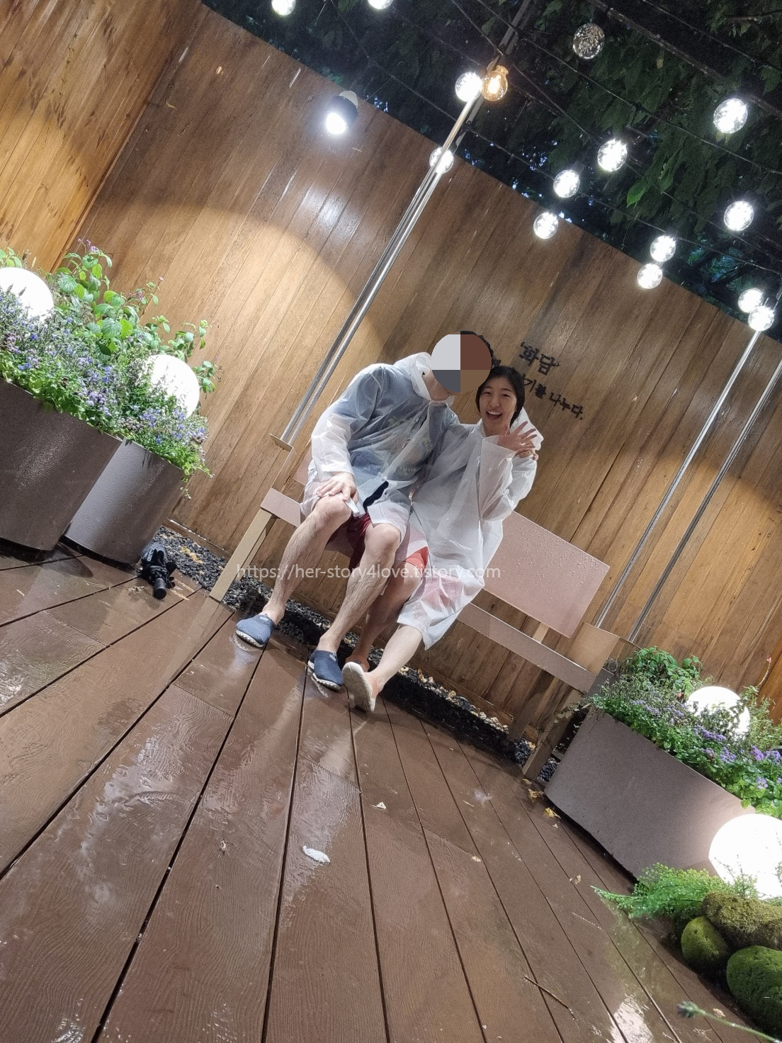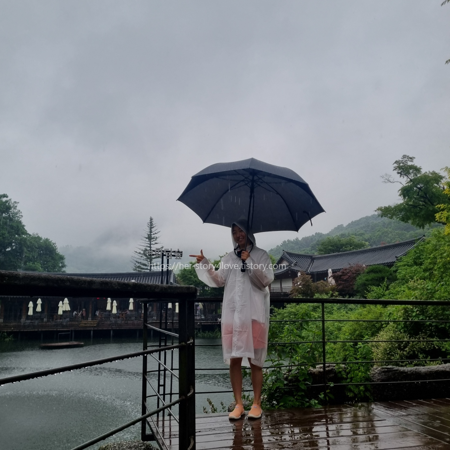 처음엔 우리도 매우 정상적으로? 우비에 우산까지 안젖으려 했지만 우린 수친자다.