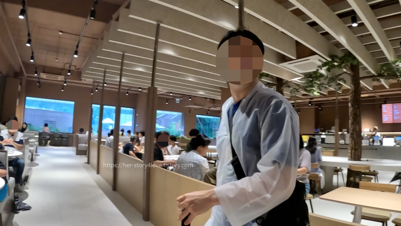 전체적으로 인테리어는 깔끔하고 숲느낌 살린게 너무 좋았는데 매장 규모에 비해 관리인이 적은건지 테이블이 더러운 곳이 군데군데 있어서 골라 앉아야했던게 좀 아쉬웠다.