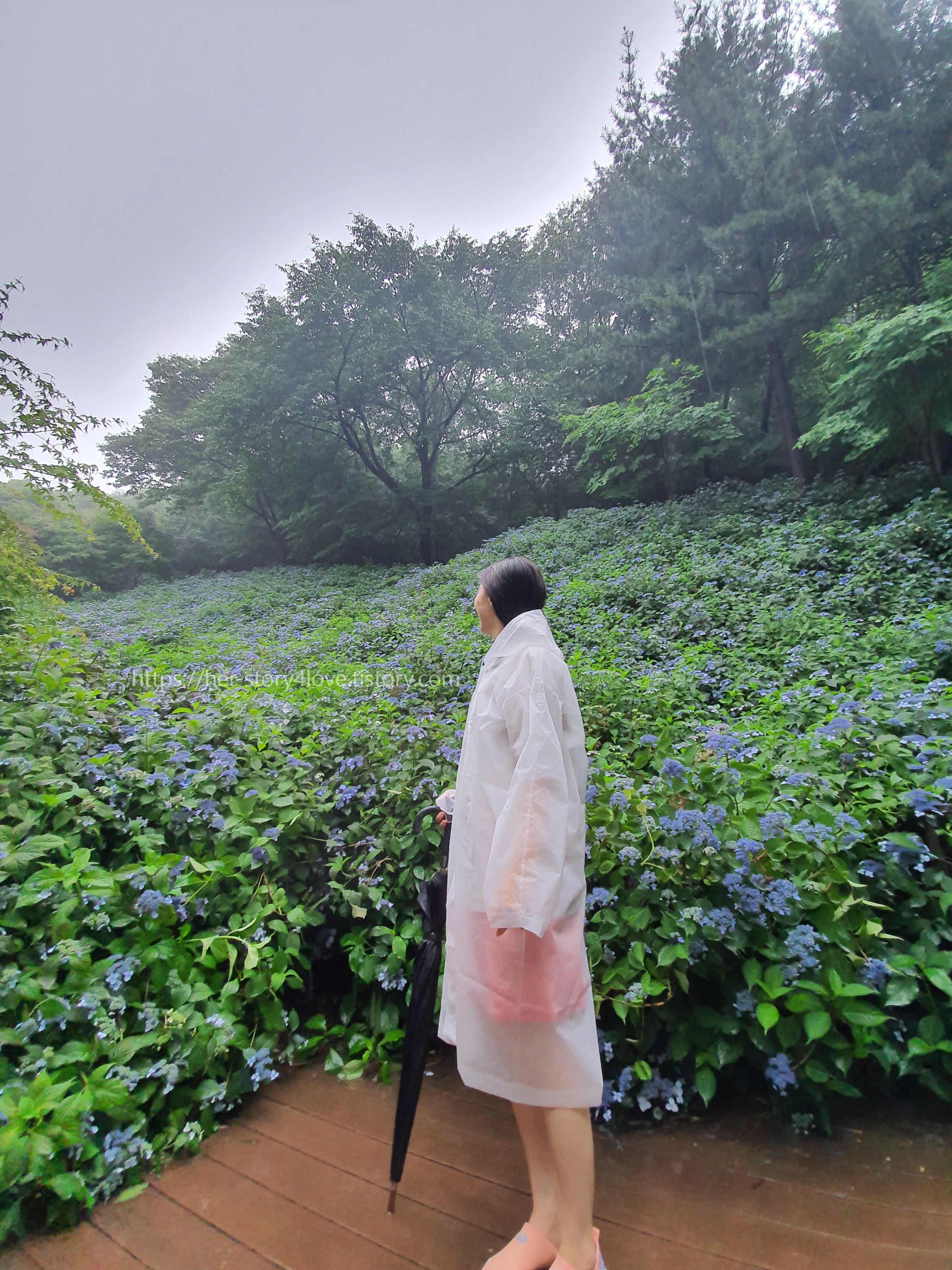 푸른 수국이 계곡을 따라 빼곡히 피어났는데 다른 식물은 하나도 안보일 정도로 정말 수국수국했다.