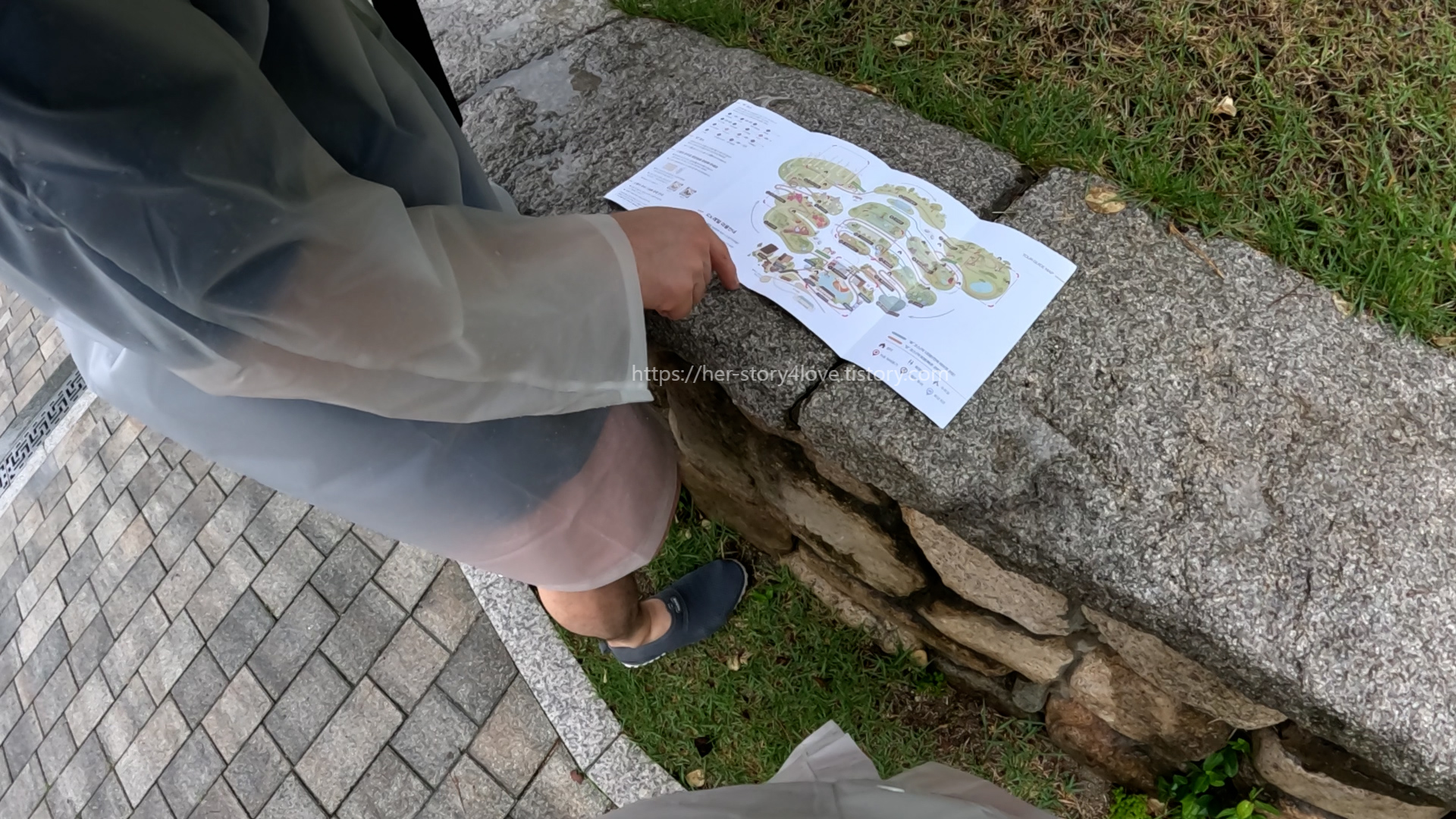 QR 티켓 확인 후 입구에 보이는 안내도를 챙겨서 바로 코스 확인하는 J들.