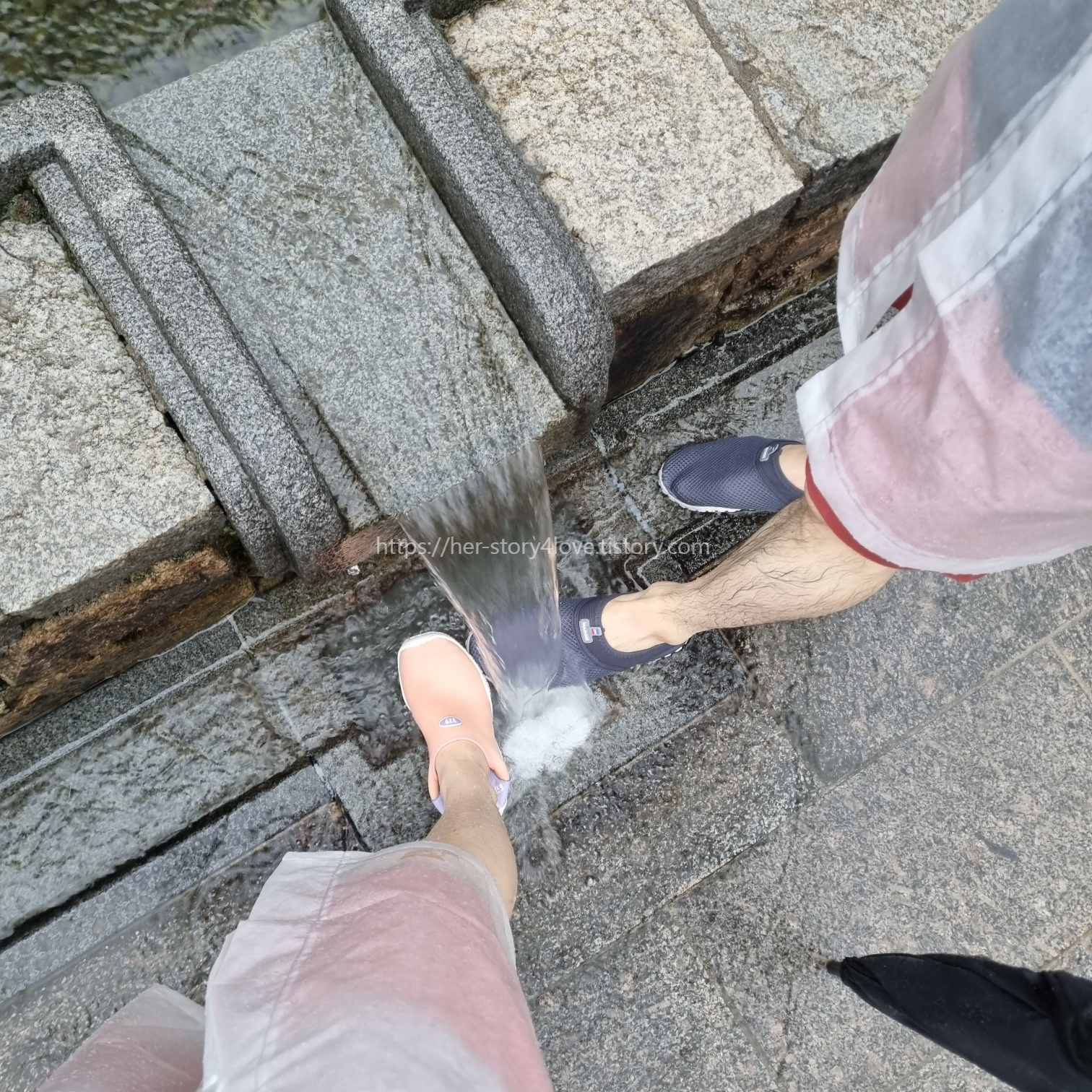 조금 특별한 거북석상 분수대 앞 흐르는 물이 식수대가 아닌걸 확인하고 발도 씻고~
